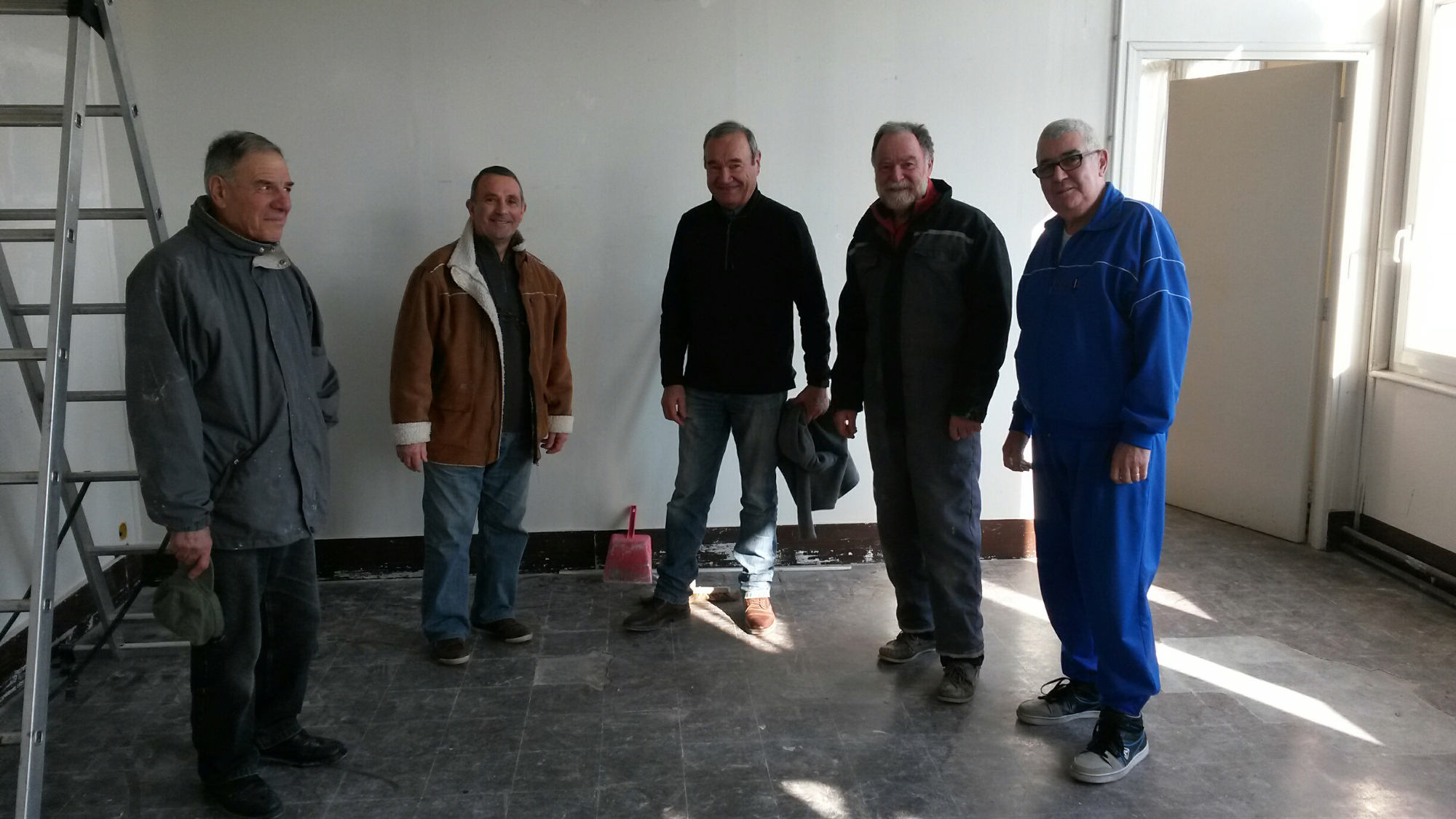 Il est ici en compagnie du président et de quelques bénévoles de l'association "Le Magenta" qui rénovent la future salle du 90 ème RI et celle des casernes du département.