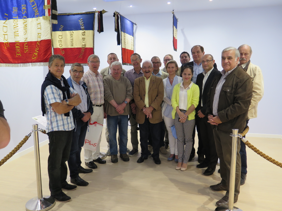 • Le drapeau de l’Association Départementale des victimes et rescapés des Camps Nazis du Travail Forcé (fiche) - Association qui a remplacé l’Association des Déportés du travail (fiche) Intitulé interdit par la justice en 1985, dans l’Indre - Association dont nous exposons les deux drapeaux .